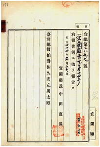 四〇 第一四号 宜蘭庁管内ノ李宗成・薜匏裾・張金生・林最枷・曹朝華・林氏来有・羅阿同ハ阿片吸食特許鑑札及購買通帳ヲ、陳章・謝連生・蔡水定・林阿扁・林阿全ハ阿片吸食特許鑑札ヲ亡失ニ付キ該鑑札及ヒ通帳ヲ無効トス