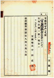 宜蘭廳告示第十六號三十七八年戰役ノ為損害ヲ被リタル者救恤ニ關シ申請書提出方ノ件