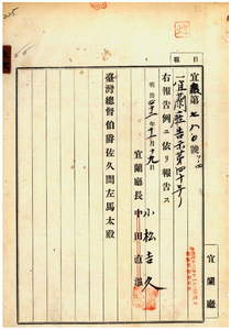 宜蘭廳告示第四十號坪林尾公學校四十二年度歲入出豫算ノ件