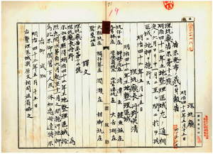 一九 第一三号 明治四二年土地整理区域ノ坑仔庄・坪林尾庄・湾潭庄・蒂魚堀庄・九崇林庄・厚徳崗坑庄・水聳凄坑庄・大舌湖庄・大粗坑庄・等仔リョ庄・濶瀬庄・柑脚坑庄・鷺蓼岬庄ニ地押施行ノ件