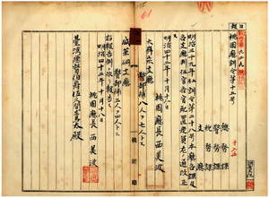 六一 第一五号 明治三九年五月桃園庁訓令第二八号本庁各課及各支庁判任官及各官配置定員改正ノ件