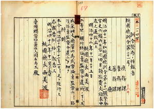 六七 第二一号 明治四一年七月桃園庁訓令第二一号警察官吏所轄内出張巡回月額旅費支給表中改正ノ件 (1909-11-25 ~1909-12-24);桃園庁・新竹庁・台南庁ノ訓令供閲ノ件 (1909-12-07 ~1909-12-24)