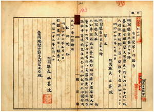 一〇三 第三三号 台北庁管内ニ豚虎列刺発生ニ付キ同庁ヨリ通知ノ件 (1909-07-02 ~1909-07-28);桃園庁・台中庁・斗六庁・蕃薯リョ庁・鳳山庁・阿緱庁・台東庁・澎湖庁ノ告示供閲ノ件 (1909-07-07 ~1909-07-28)
