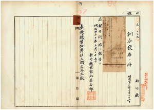 三七 第一五号 従来元苗栗庁長ノ発シタル訓令及内訓ハ元苗栗庁ノ区域ニ在リテハ別ニ定ムル迄総テ之ニ準拠スヘキ件