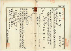 八五 第四五号 新竹庁管内北埔公学校ノ明治四二年度歳入歳出予算中追加ノ件