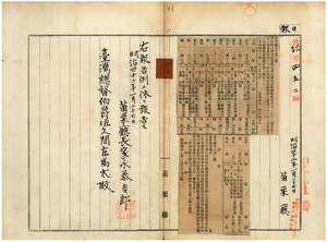 一〇 第二号 苗栗庁管内ノ徐進禄・杜海・王賜・王裕・王昴鑾ハ阿片煙膏購買吸食特許鑑札並ニ阿片烟膏購買通帳ヲ、頼江・鄭阿造・呉伝目・李永ハ阿片煙膏購買吸食特許鑑札林阿和ハ阿片煙膏購買通帳ヲ亡失ニ付キ該鑑札及ヒ通帳ヲ無効トス