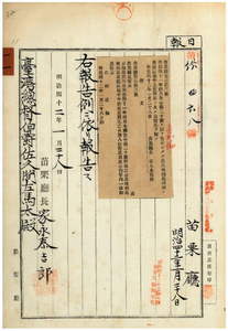 一一 第三号 明治四一年四月苗栗庁告示第二〇号ヲ以テ告示シタル公共埤圳苑裡圳ノ灌漑区域中ニ山柑庄ヲ追加ノ件