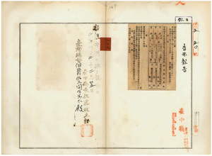 一〇九 第二六号 台南庁効忠里王城西社林鶏屎ハ所有竹筏ノ船鑑札流失、台南庁台南市海安宮街董助ハ所有手梯ノ船鑑札紛失、台南庁効忠里安平街黄天扶ハ所有龍艚ノ船鑑札流失ニ付キ各鑑札ヲ無効トシタル旨台南庁ヨリ通知ノ件