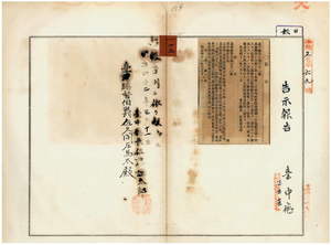 一一五 第三二号 海流調査ノ為メ佐世保台湾間ニ投入セシ浮瓶発見ノ際瓶中ノ葉書ニ記入ノ上海軍水路部ヘ送付スヘキ件