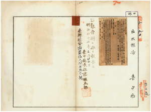 一二一 第三八号 斗六庁管内ニ流行シタ牛疫熄滅ニ付キ牛羊属ノ出入及病毒伝播ノ虞アル物品ノ搬出ヲ停止シタル処置ヲ解除スル旨同庁ヨリ通知ノ件