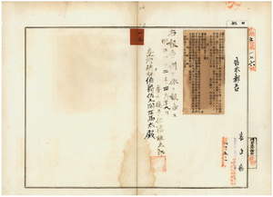 一三 第五八号 斗六庁大怒榔東頂堡新街庄ヲ牛疫流行地ト認メ牛羊属ノ出入及病毒伝播ノ虞アル物品ノ搬出ヲ停止中ノ処該疫熄滅ニ付キ其処置ヲ解除シタル旨同庁ヨリ通知ノ件