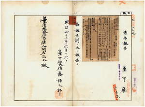 二五 第七〇号 台東庁管内ノ広郷加走湾庄潘阿伝所有ノ支那形漁船金徳順・奉郷姑律庄潘宛老所有ノ支那形漁船・同郷大港口庄木村金市所有ノ日本形小廻船ノ船鑑札流失ニ付キ該鑑札ヲ無効トスル旨同庁ヨリ通知ノ件