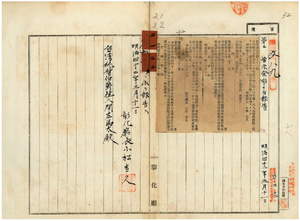 二一 第二一号 斗六庁自沙墩堡ト大怒榔東頂堡ヲ牛疫流行地ト認メ牛羊属ノ出入及病毒伝播ノ虞アル物品ノ搬出停止中ノ処其処置ヲ解除シタル旨同庁ヨリ通知ノ件