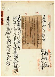 九七 第一三号 明治四二年五月南投庁訓令第八号課及支庁配置定員中改正ノ件