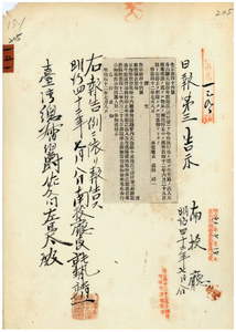 一五一 第四四号 斗六庁尖山堡牛尿港庄ヲ牛疫流行地ト認メ牛羊属ノ出入及病毒伝播ノ虞アル物品ノ搬出停止中ノ処其処置ヲ解除シタル旨同庁ヨリ通知ノ件