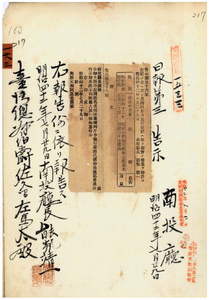 一六三 第五六号 台湾阿片令施行規則ニ依リ南投庁埔里社堡埔里社街陳鼠ニ阿片煙膏吸食所ヲ特許ス