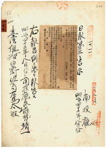 一六六 第五九号 斗六庁他里霧堡大東庄土名新崙ヲ牛疫流行地ト認メ牛羊属ノ出入及病毒伝播ノ虞アル物品搬出ヲ停止シタル旨同庁ヨリ通知ノ件