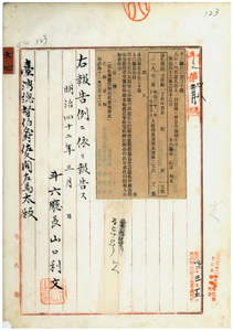六四 第三〇号 斗六庁大怒榔東頂堡北港街丁蘇ハ竹茂鑑札紛失ニ付キ該鑑札ヲ無効トス