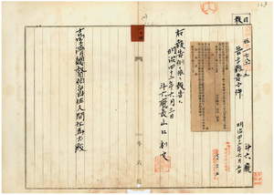 一〇二 第六八号 斗六庁大怒榔東頂堡土間厝庄ニ牛疫発生及ヒ斃死ノ件