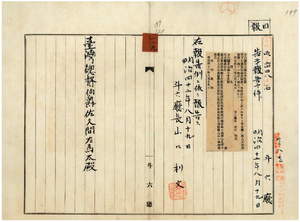 一二九 第九五号 斗六庁打猫東頂堡崁脚庄ヲ牛疫流行地ト認メ牛羊属ノ出入及病毒伝播ノ虞アル物品ノ搬出ヲ停止ス
