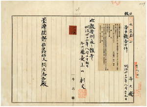 一三九 第一〇五号 斗六庁大怒榔東頂堡後溝仔庄ニ牛疫発生及ヒ撲殺ノ件(1909-08-27~1909-09-21);斗六庁・嘉義庁・塩水港庁・台南庁ノ告示供閲ノ件(1909-09-02~1909-09-21)