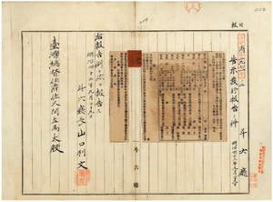 一五一 第一一七号 斗六庁管内ノ陳仲謀・陳漏・張最番・劉徳聖ハ阿片吸食特許鑑札ヲ、陳仲謀・許堂・周結・張最番ハ阿片購買通帳ヲ亡失ニ付キ該鑑札及ヒ通帳ヲ無効トス