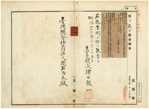 一二 第一一号 打猫東頂堡草嶺庄ヲ崁頭厝支庁管轄区域ニ編入ノ件