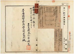 二七ノ二 第一五号 明治四〇年五月嘉義庁訓令第二六号庁事務分課規程施行細則中改正ノ件