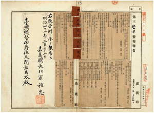 六四 第一七号 斗六庁管内ヲ牛疫流行地ト認メ牛羊属ノ出入及病毒伝播ノ虞アル物品ノ搬出ヲ停止中ノ処該疫熄滅ニ付キ其処置ヲ解除シタル旨同庁ヨリ通知ノ件