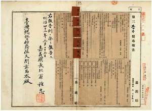 嘉義廳告示第十八號小學校高等科ノ教科目ニ手工ヲ加フル件