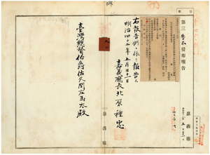 八二 第三五号 台湾阿片令施行規則第四〇条ニ依リ嘉義庁嘉義西堡嘉義街林江ノ阿片煙吸食所特許営業ヲ禁止ス