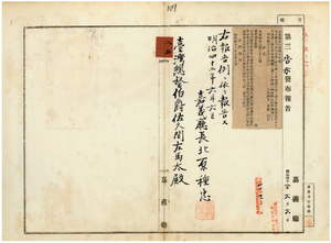 八五 第三八号 斗六庁管内ヲ牛疫流行地ト認メ牛羊属ノ出入及病毒伝播ノ虞アル物品ノ搬出ヲ停止シタル旨同庁ヨリ通知ノ件