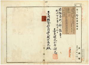 八六 第三九号 嘉義庁打猫東下堡陳厝リョ庄ヲ牛疫流行地ト認メ牛羊属ノ出入及病毒伝播ノ虞アル物品ノ搬出ヲ停止ス