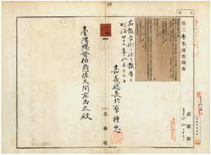 一〇七 第六〇号 嘉義庁大怒榔西堡湾内庄ト大苛田西堡凄菜埔庄ヲ牛疫流行地ト認メ牛羊豚ノ出入及病毒伝播ノ虞アル物品ノ搬出入ヲ停止中ノ処其処置ヲ解除ス