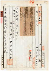 鹽水港廳告示第四十五號牛羊屬出入等停止ノ通知