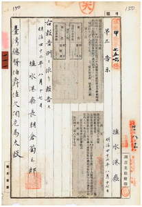 一一一 第八四号 明治四二年五月塩水港庁告示第三八号塩水港庁店仔口公学校ノ明治四二年度歳入歳出予算中追加ノ件