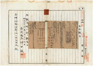 四一 第四号 明治四一年後期分地租及地租附加税並ニ同年分官租ノ納期及納入場所指定ノ件(1909-01-29~1909-03-03);第五号 台南庁梓仙渓西里雲掩臼庄二年疫発生ノ件並ニ嘉義庁ト鳳山庁両管内ニ牛疫発生ニ付キ両庁ヨリ通知ノ件(1909-01-29~1909-03-03)