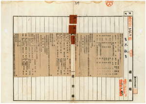五二 第一六号 台南庁効忠里王域西社林鶏屎ハ竹卩般鑑札ヲ、台南市海安宮董助ハ手梯船鑑札ヲ、台南庁効忠里安平街黄天扶ハ龍艚船鑑札紛失ニ付キ各鑑札ヲ無効トス