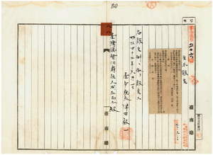 八八 第五三号 台南庁楠梓仙渓西里密枝庄ヲ牛疫流行地ト認メ牛羊豚ノ出入並病毒伝播ノ虞アル物品ノ搬出入ヲ停止ス