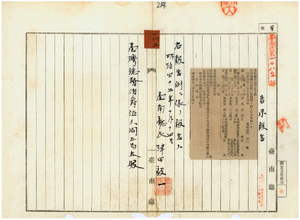 一四五 第一一〇号 台南庁効忠里安平街大阪商船株式会社安平支店ノ日本形団平船及ヒ台南市庚陳及ノ支那形手梯ノ船鑑札流失ニ付キ該鑑札ヲ無効トス