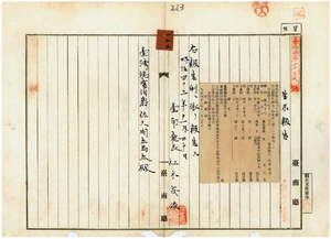 一五三 第一一八号 台南庁効忠里安平区海頭庄陳五箇ノ支那形船ノ金信発・金智発・金万財・不党仔ノ船鑑札流失ニ付キ該鑑札ヲ無効トス