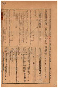五一 第一六号 明治三九年一一月蕃薯リョ庁令第二二号公共事業二属スル市場及屠畜場管理規程第三条第三項ニ依リ蕃薯リョ庁楠梓仙渓東里六亀里庄ノ陳連生ニ六亀里屠畜場ノ管理者ニ指定ノ件