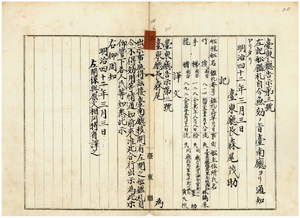 四 第三号 台南庁管内ノ効忠里玉城西社林鶏屎所有ノ竹筏船鑑札流失及ヒ台南市海安宮街董助所有ノ手梯船鑑札紛失並ニ効忠里安平街黄天扶所有ノ龍艚船鑑札流失ニ付キ該鑑札ヲ無効トス