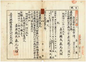 一一 第一〇号 台南庁台南市北勢街呉荘所有ノ手梯船鑑札遺失及ヒ同庁効忠里安平街十二宮社顔定国所有ノ支那形金徳利船鑑札流失ニ付キ該鑑札ヲ無効トス