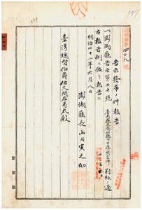 一〇〇 第二〇号 台南庁ト鳳山庁両管内ニ牛疫発生及ヒ台南庁管内ヲ牛疫流行地ト認メ牛羊豚ノ出入並病毒伝播ノ虞アル物品ノ搬出ヲ停止シタル旨両庁ヨリ通知ノ件