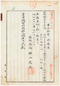 一三〇 第五〇号 台北ト台中ニ於テ明治四三年度第一守備隊管下ニ於ケル徴兵身体検査施行ノ件