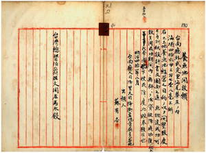 二一 台南庁大目隆里大目降街蘇有志ヘ台南庁外武定里海尾リョ庄ニ養魚池開設ノ為メ無料貸付及予約貸付ノ件(指令案第一〇一二号)