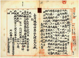 一一 台北庁長井村大吉ヨリ稟申ノ台北庁大加蚋堡台北城内撫台街所在ノ城隍廟所属財産処分方認可ノ件(指令第六三四二号)