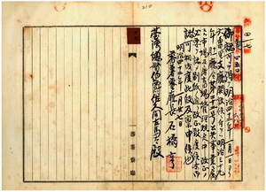 二七 蕃薯リョ庁長石橋亨ヨリ稟申ノ明治三九年一一月庁令第二二号公共事業ニ属スル市場及兮畜場管理規程中改正及ヒ設置区域認可ノ件(指令第四一七号)