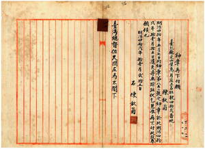 一二 台北庁長井村大吉ヨリ進達ノ同庁文山堡烏月庄陳秋菊ハ紳章遺失再下付ニ付キ通牒ノ件